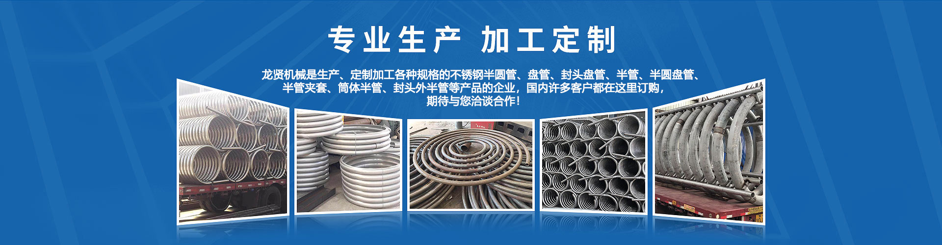 無錫龍賢機械制造有限公司生產: 半管 半圓管 盤管 封頭盤管 外半管 半管夾套 封頭外半管 不銹鋼半圓管 304不銹鋼盤管等